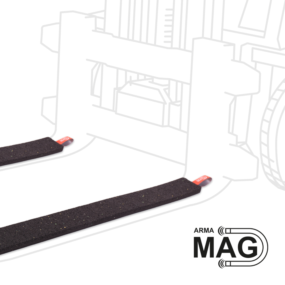 Unsere Staplerzinkenauflage ARMA-MAG LD (Low Density) ist eine magnetische Antirutschmatte, entwickelt für die sichere innerbetriebliche Beförderung von Ladungen mit dem Gabelstapler. Schnell montierbar & demontierbar auf den Staplerzinken, fester Halt auf glatten Oberflächen, Schutz vor Beschädigungen empfindlicher Oberflächen.