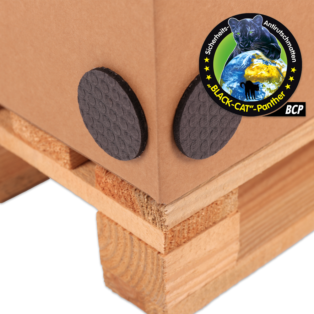 Heavy-duty non-slip mat for use as a transport safety device, consisting of extremely tear-resistant PES carrier knitted fabric with PVC soft foam special coating.