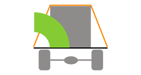 Erklärung anhand einer Ladung von 2 Paletten (Gewicht: 3000 kg) die einzeln und mitten auf der Ladefläche transportiert wird, weil die Hinterachse das Gewicht ohne Bedenken tragen kann. Kein Formschluss gegeben, d.h. zwischen Ladung und Bordwänden sind Freiräume.